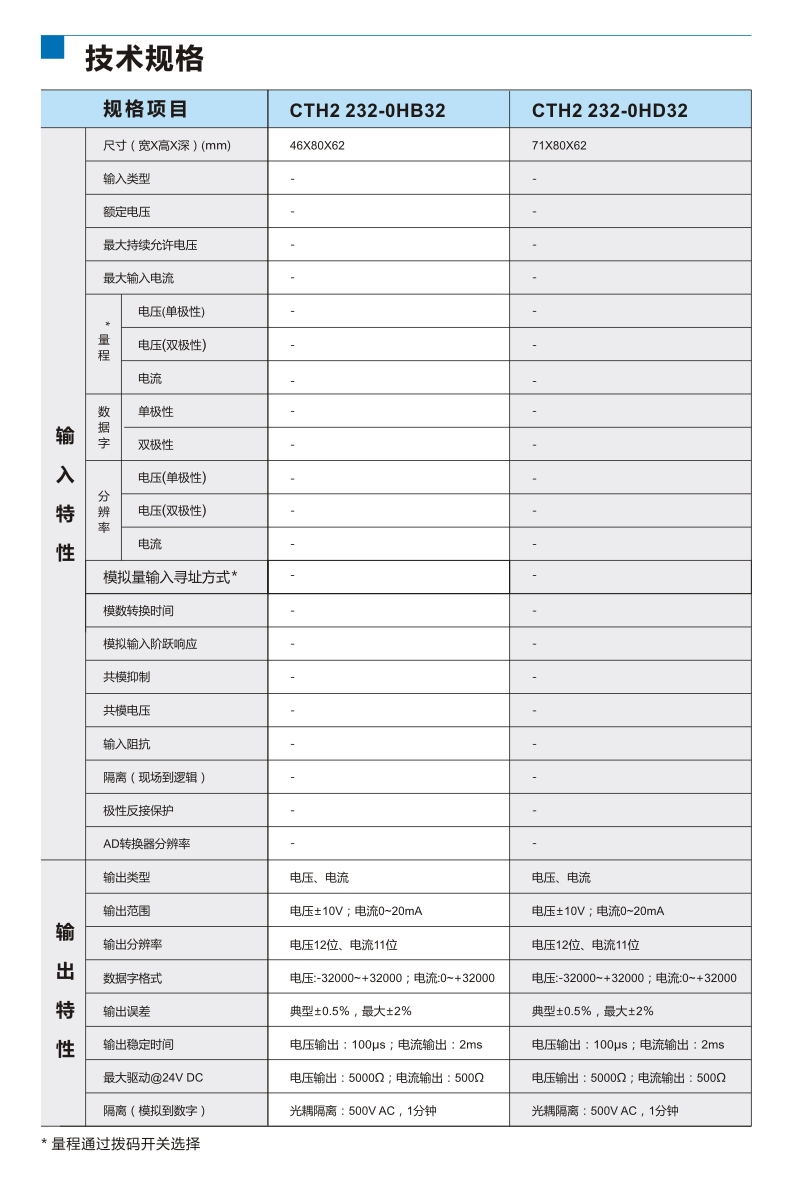 SM 232 模擬量輸出模塊 | 模擬量輸出模塊,2 點(diǎn),±10V電壓或0~20mA電流輸出,隔離型電壓12位精度或電流11位精度 | CTH2 232-0HB32 |