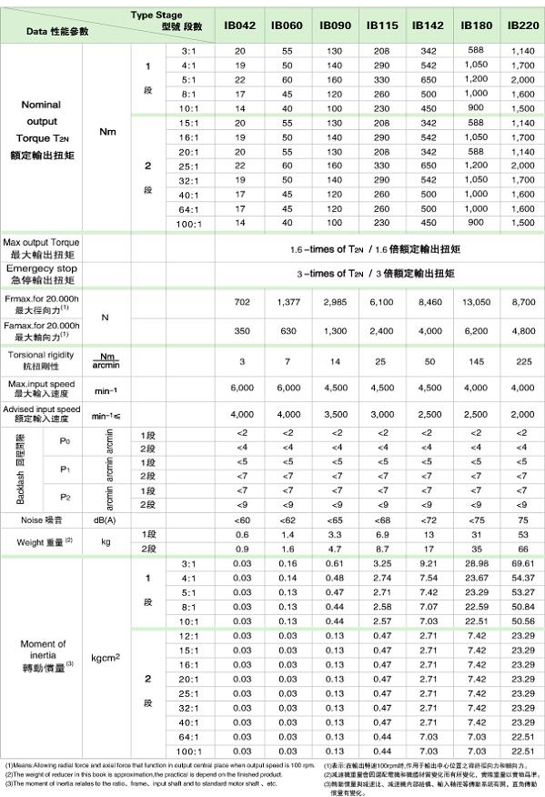 IB 系列精密行星減速機(jī)技術(shù)參數(shù)