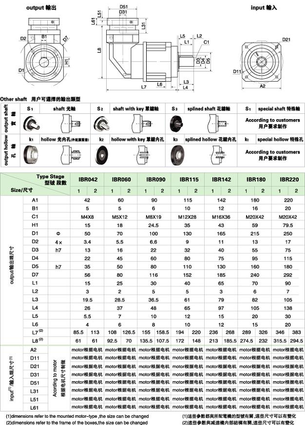 IBR 系列精密行星減速機(jī)技術(shù)參數(shù)