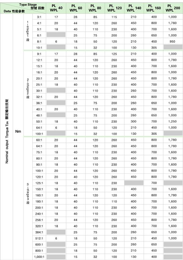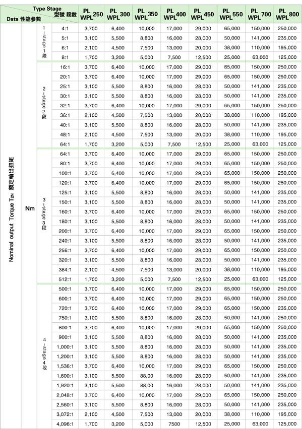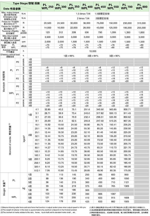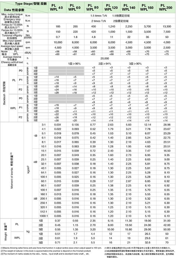 PL/WPL 系列精密行星減速機(jī)技術(shù)參數(shù)