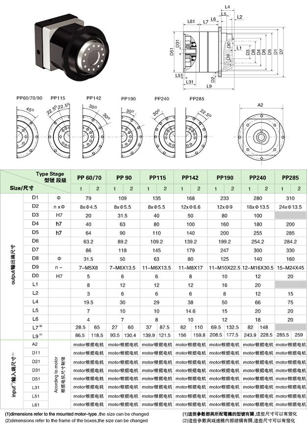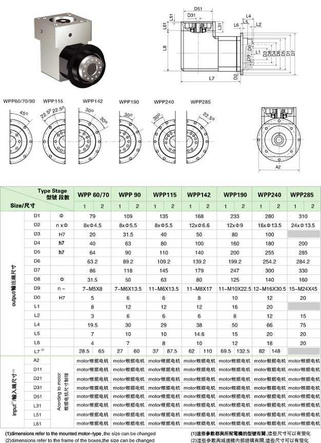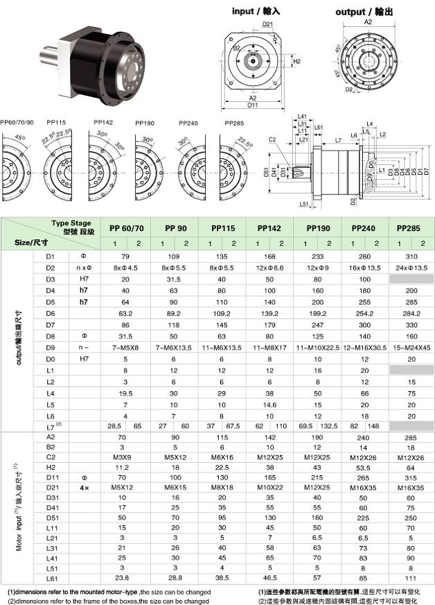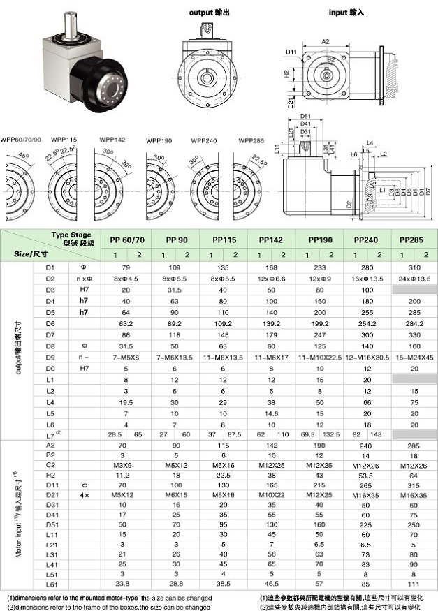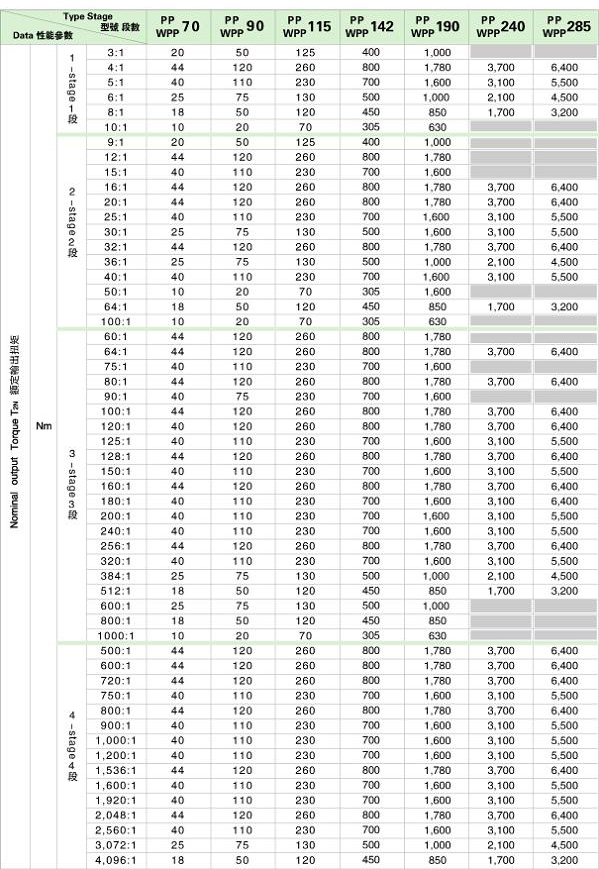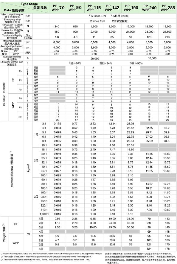 PP/WPP 系列精密行星減速機技術參數(shù)